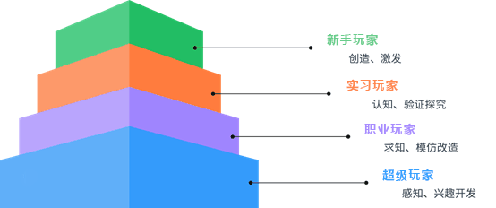 基于对物联网、人工智能等先进技术以及未来发展对人才培养需求的深入理解,结合认知科学与发展心理学最新研究成果,面向基础教育阶段的青少年(6-18岁)打造了“超级玩家”课程体系,作为基础机器人编程教育课程。